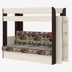 Кровать 2-х ярусная с диваном Карамель 75 (Музыка) Анкор светлый/Бодега темный