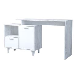 Стол письменный Эго Ст-2 1 дверца 1 ящик (на ножках) Бетон светлый/Белый глянец