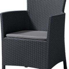 Iowa - это элегантное и комфортное садовое кресло, предлагаемое в комплекте с подушкой. Широкая гамма цветов и оригинальная, подобная ротанговой, фактура поверхности придется по вкусу даже самым требовательным пользователям. Изготовлено из стойкой к воздействию УФ-излучения и погодных условий высококачественной пластмассы. Очень просто собирается и легко чистится.