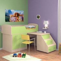 Кровать-чердак "Дюймовочка-2" Дуб молочный/салатовый